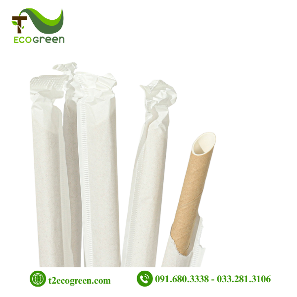 Ống hút giấy dùng 1 lần – nâu kraft phi 8 có màng bọc