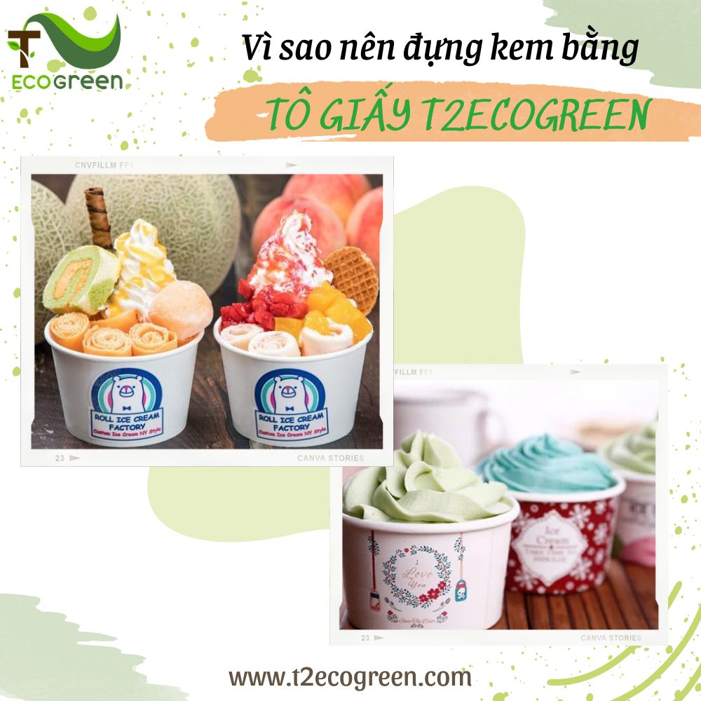 THƯỞNG THỨC KEM ĐỰNG TRONG LY GIẤY, TÔ GIẤY CÙNG T2ECOGREEN
